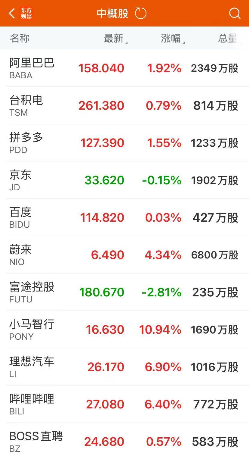 热门中概股多数上涨,纳斯达克中国金龙指数收涨0.87%。理想汽车涨超6%,哔哩哔哩涨超5%,蔚来涨超4%,小鹏汽车涨超2%,阿里巴巴、拼多多、网易涨超1%。
